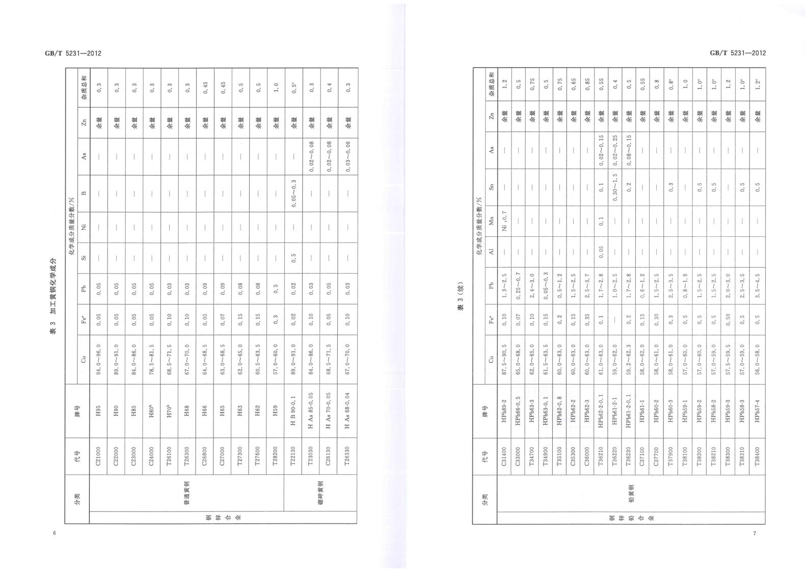 GBT 5231-2012 加工銅及銅合金牌號和化學成分