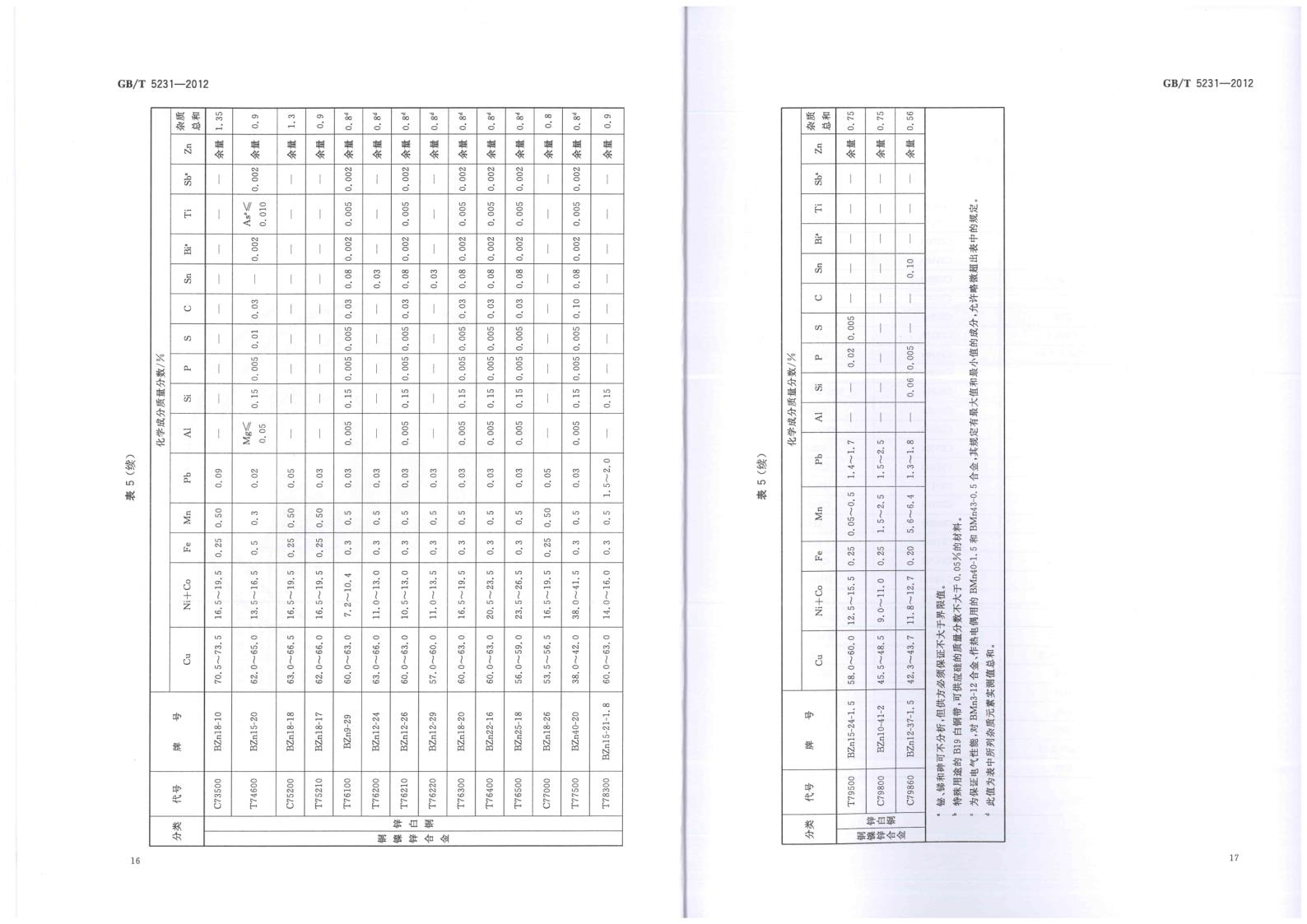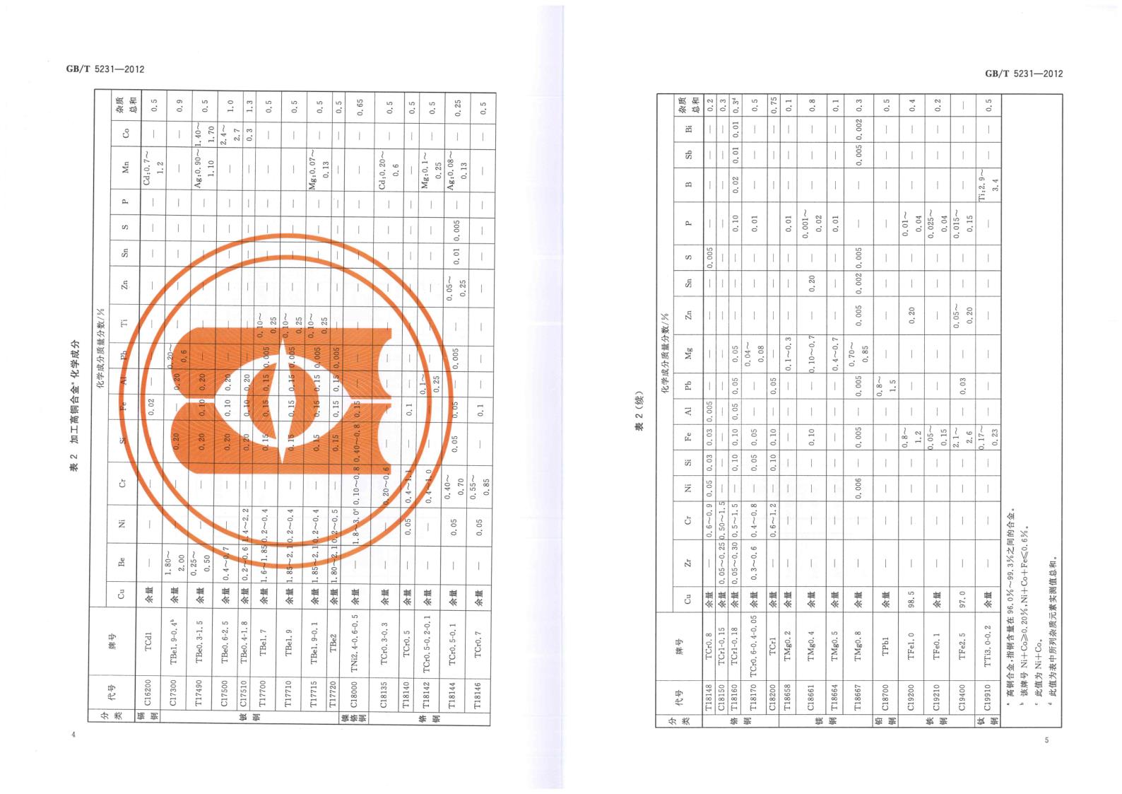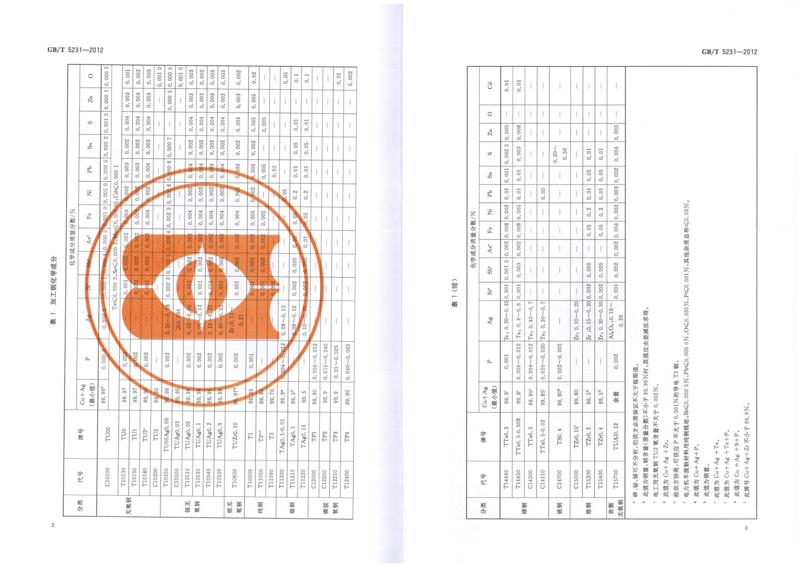 GBT 5231-2012 加工銅及銅合金牌號和化學成分